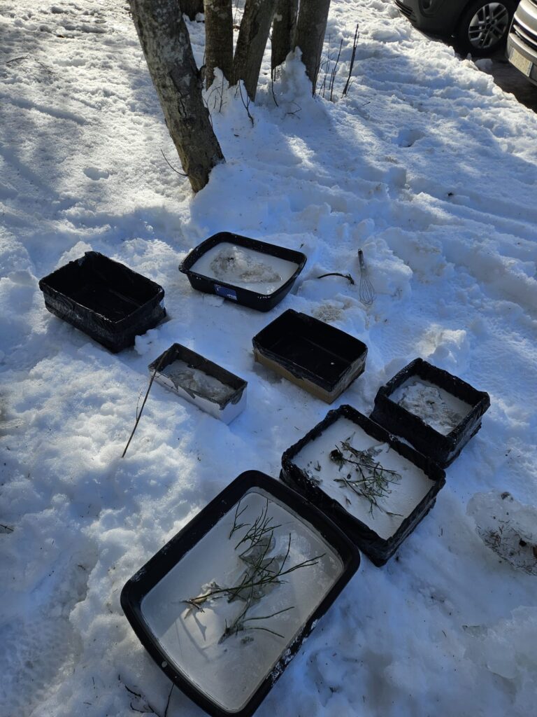 Accueillie dans le cadre de la résidence itinérante portée par le Réseau Altitudes, en partenariat avec le CAUE Haute-Savoie, l’artiste Myrtille Bouvret poursuit une recherche dédiée aux dernières traces de l’hiver. Elle travaille avec l’eau dans ses formes les plus fragiles - neige, glace, givre, stalactites - attentive aux instants où la matière se transforme et où l’hiver inscrit sa présence avant de se retirer.