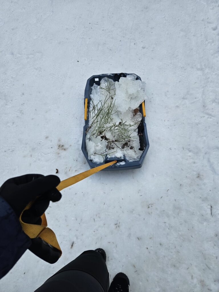 Durant cette résidence, je marche, j’observe les changements, je scrute l’éphémère. Je repère des lieux, des mouvements à accompagner. La montagne devient mon atelier ; l’eau, ma matière ; le froid, mon outil ; l’hiver, mon inspiration. J’emporte des fragments de saison, prélevés au moment où ils se défont.